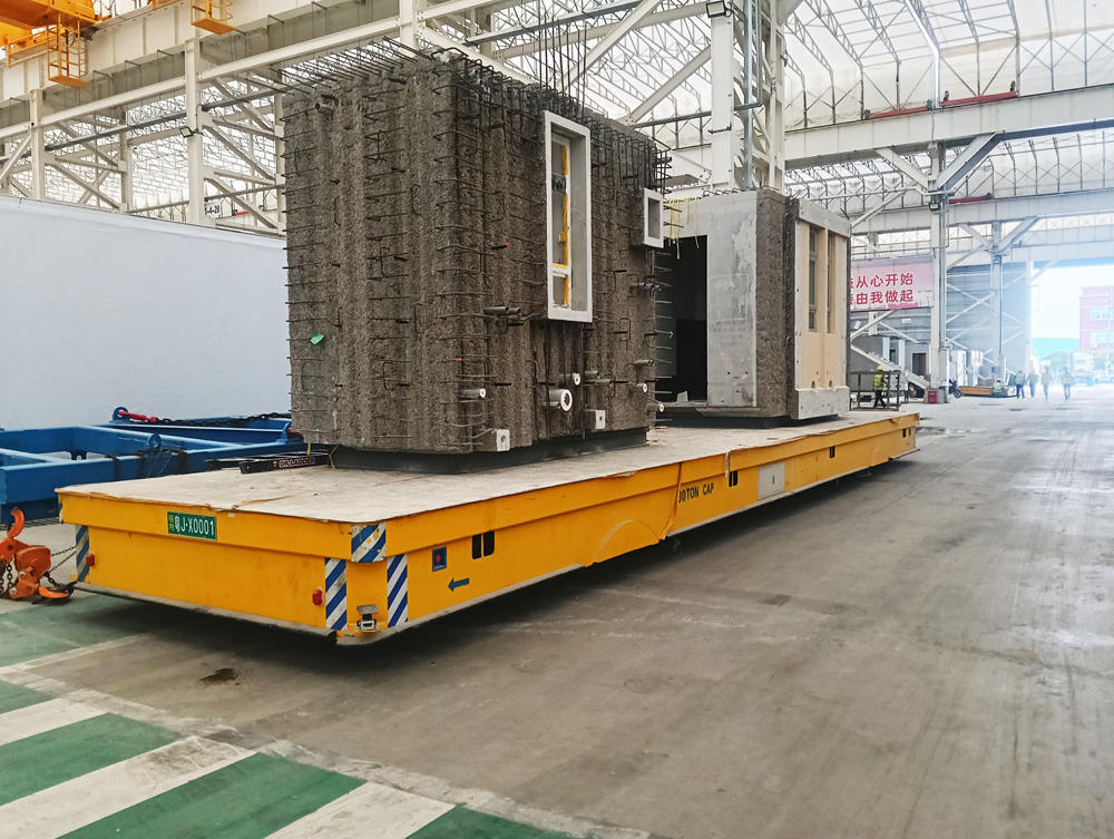 這兩臺凝聚智杰優核心技術的搬運裝備,充分滿足客戶現場轉運需求,憑借全向移動能力及大噸位載重,顯著提升了大宗水泥房體結構的轉運效率,解決了傳統搬運設備轉向笨拙、空間受限的核心痛點。