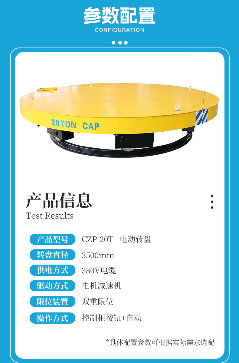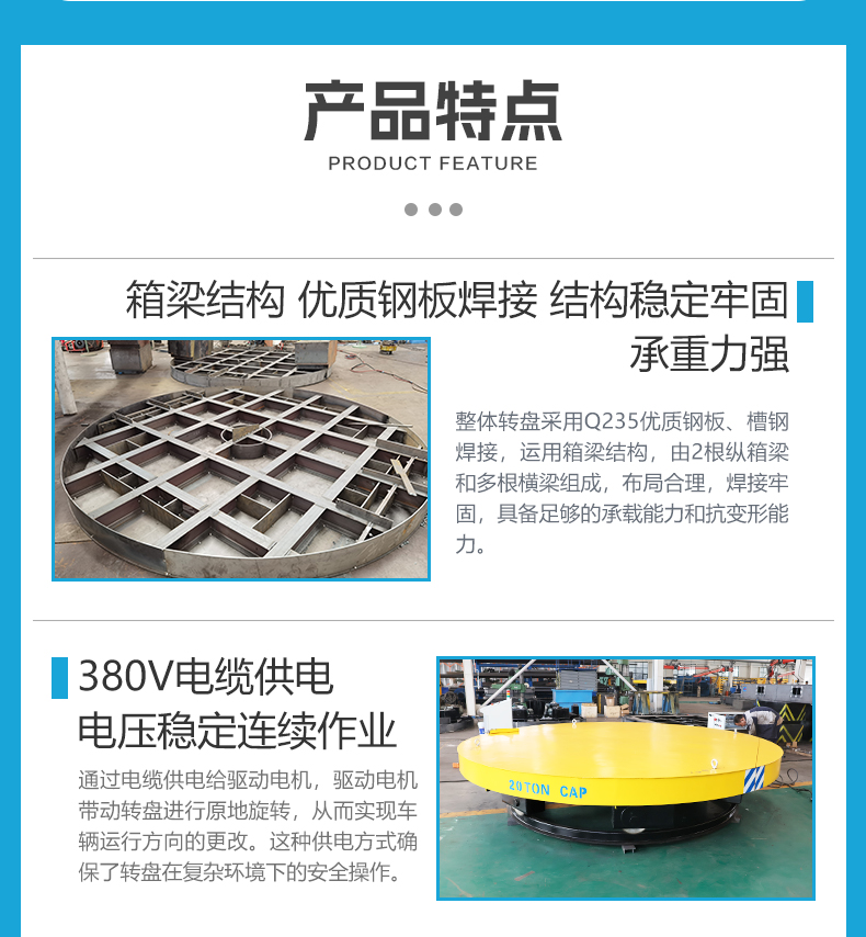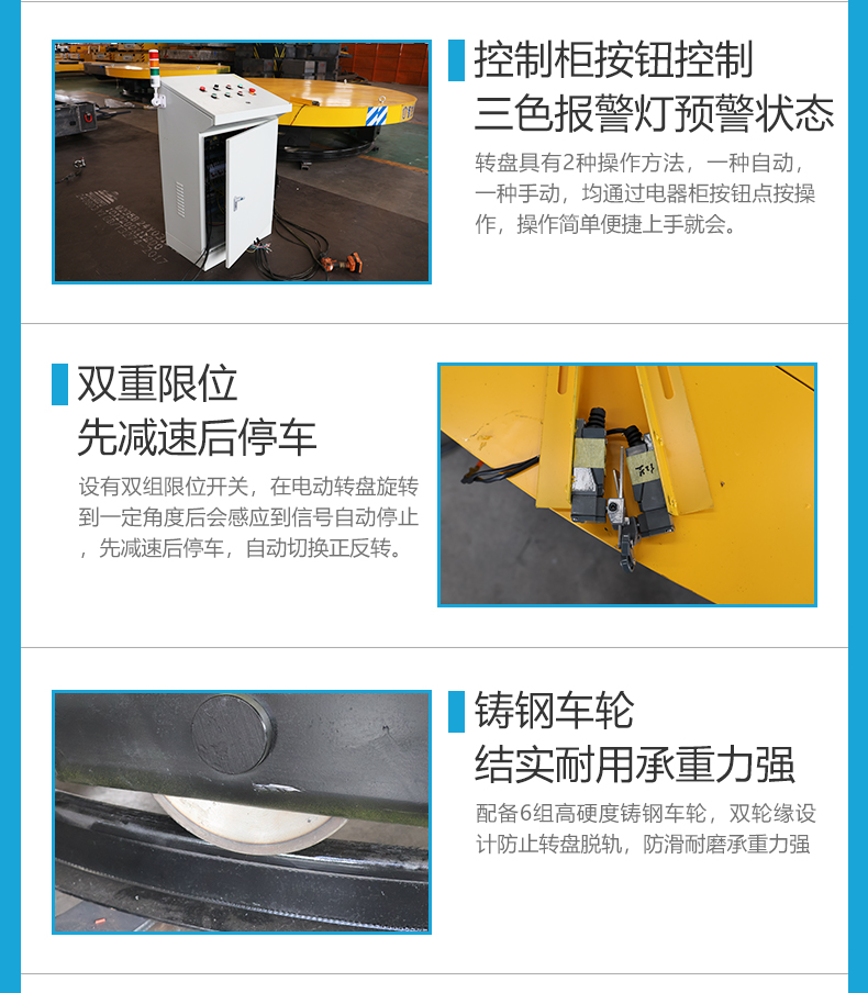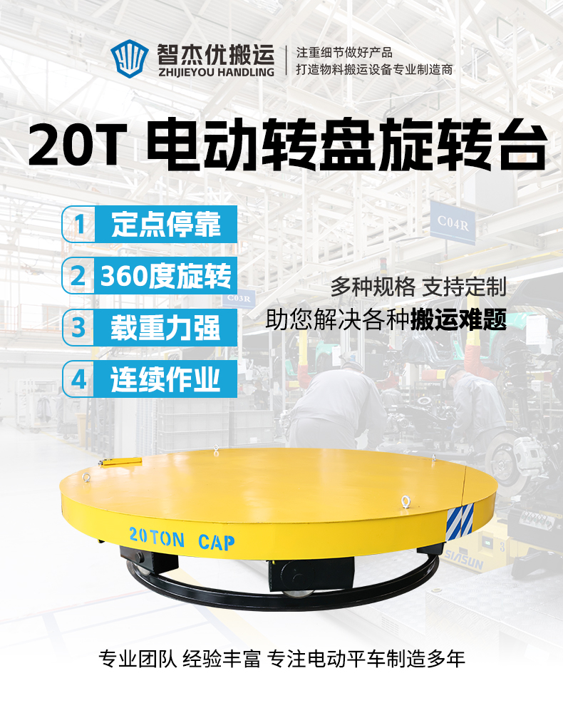 描   述: 客戶訂購的8臺(tái)電動(dòng)轉(zhuǎn)盤***批4臺(tái)交付前運(yùn)行測試,直徑3.5米超大平臺(tái)整車箱梁式車架結(jié)構(gòu),高強(qiáng)度鋼板精密焊接成型,可達(dá)20噸額定載荷,錐形箱支撐穩(wěn)定牢固。轉(zhuǎn)盤具有手動(dòng)操作與自動(dòng)控制兩種模式,雙重限位開關(guān)設(shè)置兩點(diǎn)位自動(dòng)停靠,180°雙向旋轉(zhuǎn),,定位精度正負(fù)3mm,雙工位一鍵切換響應(yīng)快精度高停靠平穩(wěn),外接380V動(dòng)力系統(tǒng),支持24小時(shí)連續(xù)高強(qiáng)度作業(yè)!
