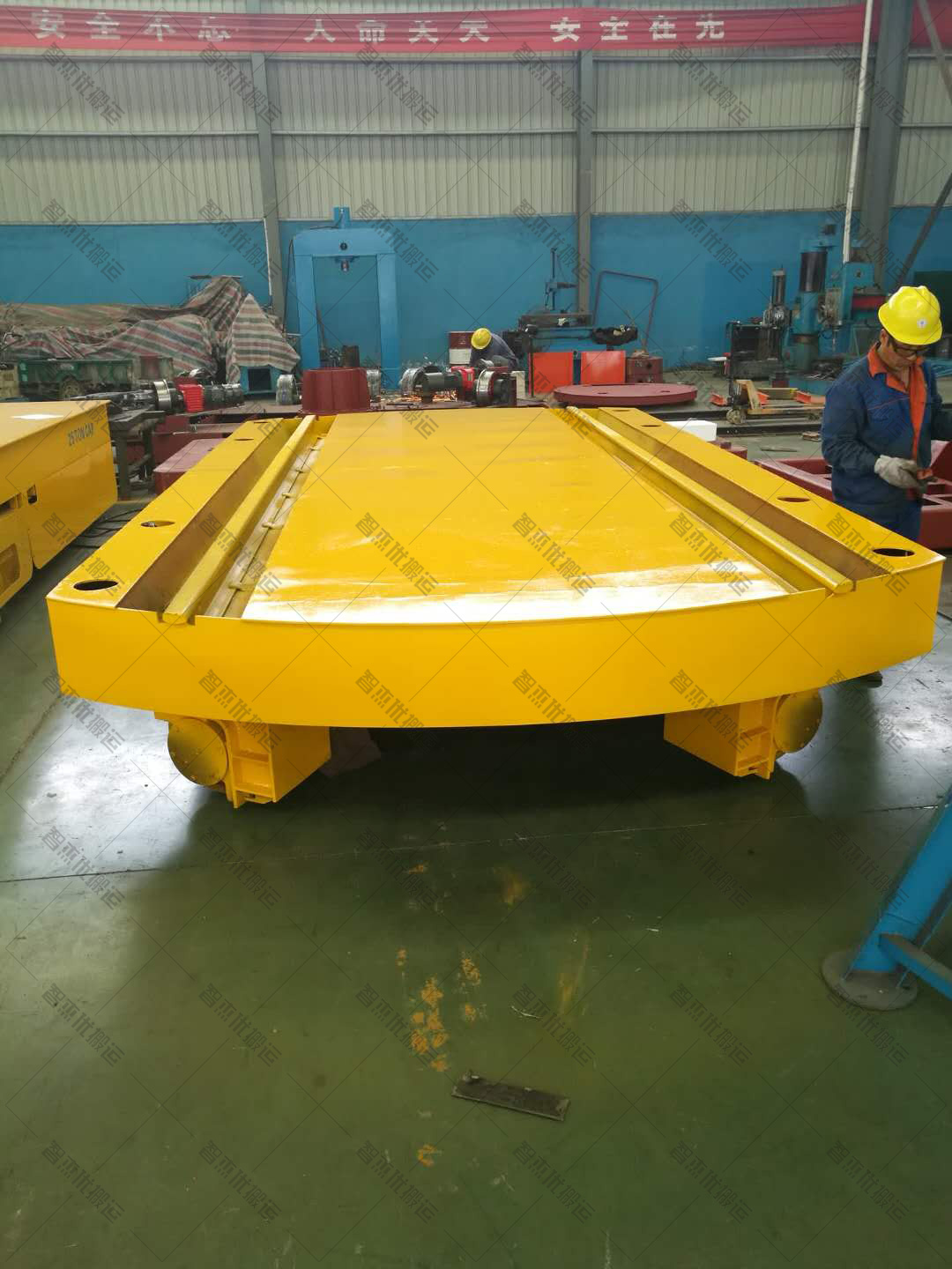 CZP電動轉盤為電動平車的配套裝備。當車間內平面工藝布置需要電動平車做較小角度轉彎,其轉彎電動平車也不能滿足其要求時,可配置轉盤,電動平車在轉盤上可做度轉向。