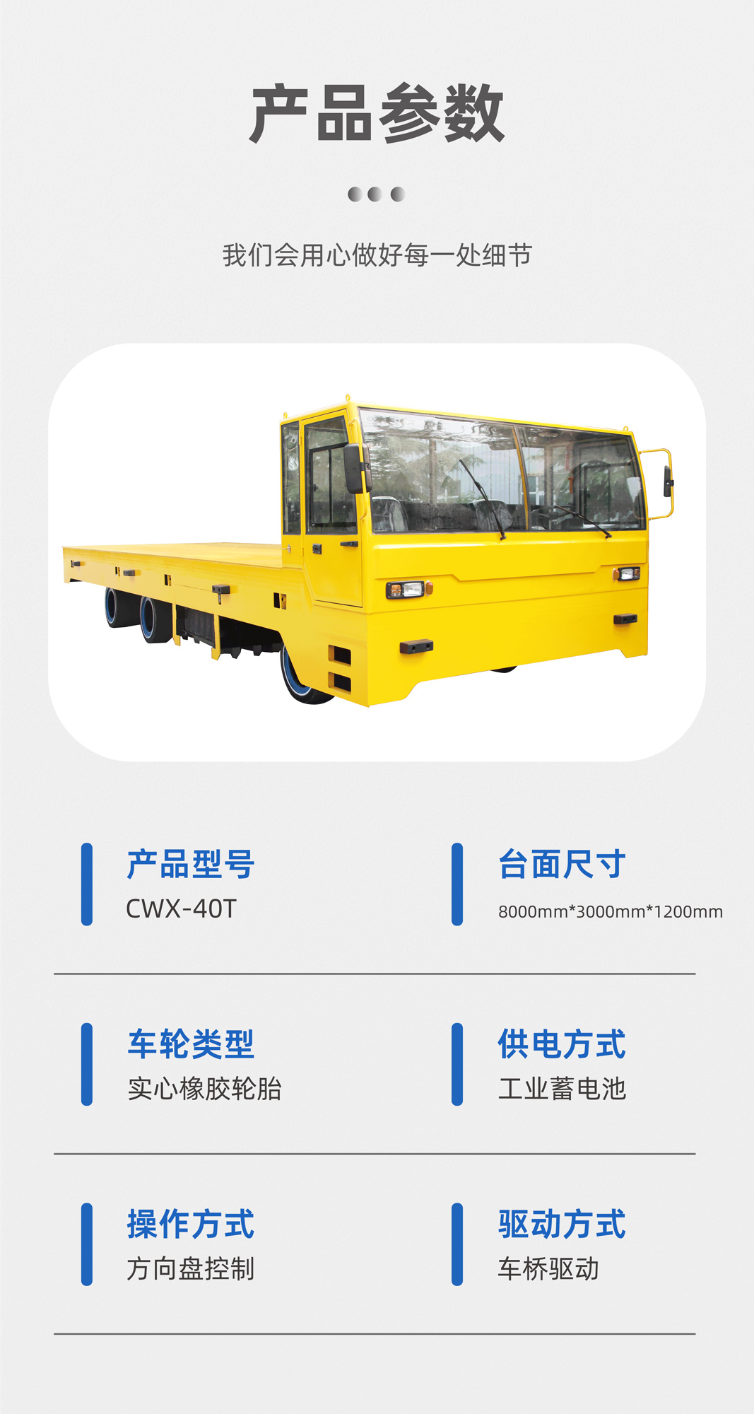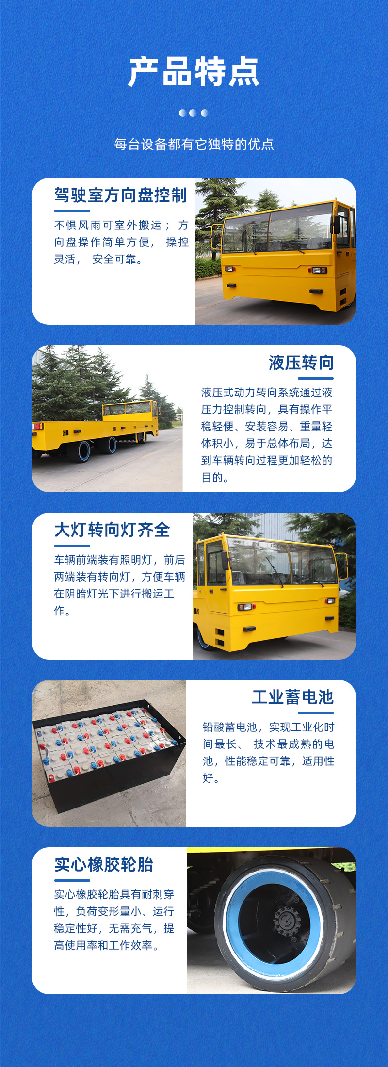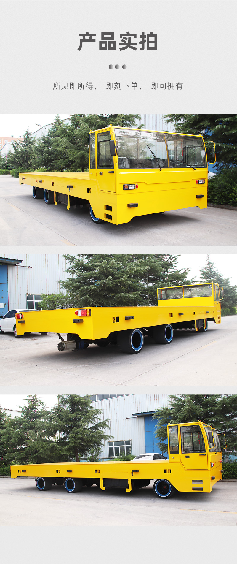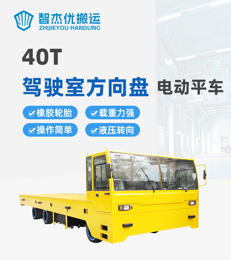 廠區大型駕駛室方向盤式無軌電動搬運車,整車長8米,寬3米高1.2米,箱梁結構承重力強載重40噸,主要用于鋼管、板材等重型物料的搬運工作,2臺大功率電機啟動力足,動力強勁,爬坡能力強,通過控制方向盤和加速踏板來實現靈活操控,簡單方便上手快,蓄電池供電節能環保無污染,液壓轉向輕松平穩,轉彎靈活,6個實心橡膠輪胎承載力強,負荷變形量小,防滑耐磨耐刺穿適應多種路面行駛,車身底盤高、通過性良好,適合廠區遠距離大型、重型物料轉運使用!