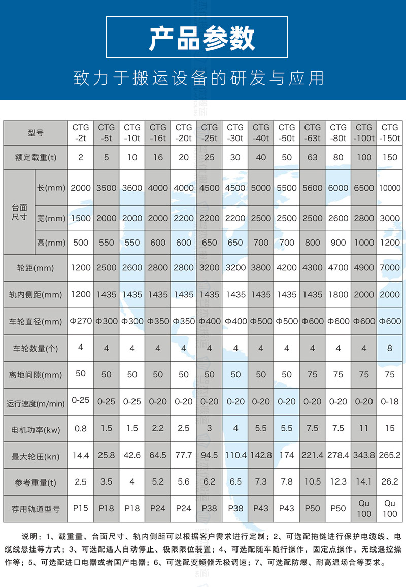 公司保障:電動(dòng)平車、軌道平車的承重安全系數(shù)不低于60%