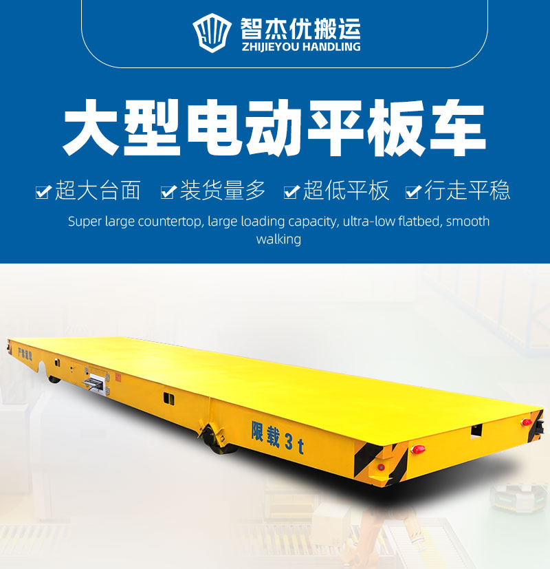 3噸大型電動平板車,超大臺面設計能夠裝較多的貨物,適合于體積大重量小物料搬運,載重3噸車架選用優良鋼板拼裝焊接,箱梁結構科學設計保障承載重量數值,專用牽引蓄電池供電,有效延長減速機使用壽命,車體機械懸掛、平衡結構自動調節;多種剎車方式可供選擇,聚氨脂包膠輪胎無須充氣更加便捷,耐磨耐撕防刺有效提高工作效率。操作方式可無線搖控也可在線手柄操控;車身裝有聲光報警、激光感應,時刻提醒現場人員避讓,遇到障礙自動停車;儀表實時顯示電量使用情況,電器內部多重保護有效避免過載欠壓過流造成電器元件故障。根據工況條件可定制特殊結構、載重500噸以下的機型。