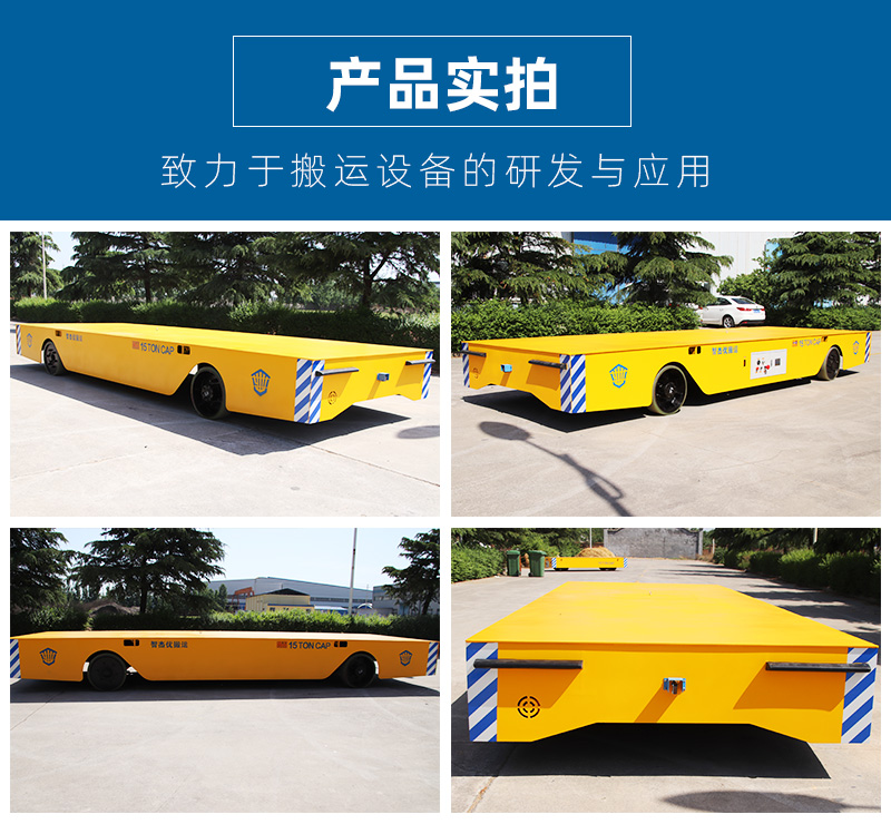 無軌電動平車,采用專用牽引蓄電池低壓供電動力強勁,延長減速機使用壽命,車體機械懸掛、平衡結構自動調節;多種剎車方式可供選擇,聚氨脂包膠輪胎無須充氣更加便捷,耐磨耐撕防刺提高工作效率。操作方式可無線搖控也可在線手柄操控;車身裝有聲光報警、激光感應,時刻提醒現場人員避讓,遇到障礙自動停車;儀表實時顯示電量使用情況,電器內部多重保護避免過載欠壓過流造成電器元件故障。根據工況條件可定制防爆防塵防水、自動導航等功能。