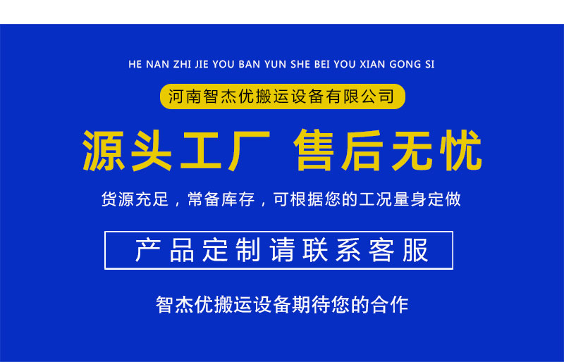 河南智杰優搬運設備有限公司以“質量取勝,服務取勝”的經營理念,為了客戶的利益,公司建立了一整套快速的質量信