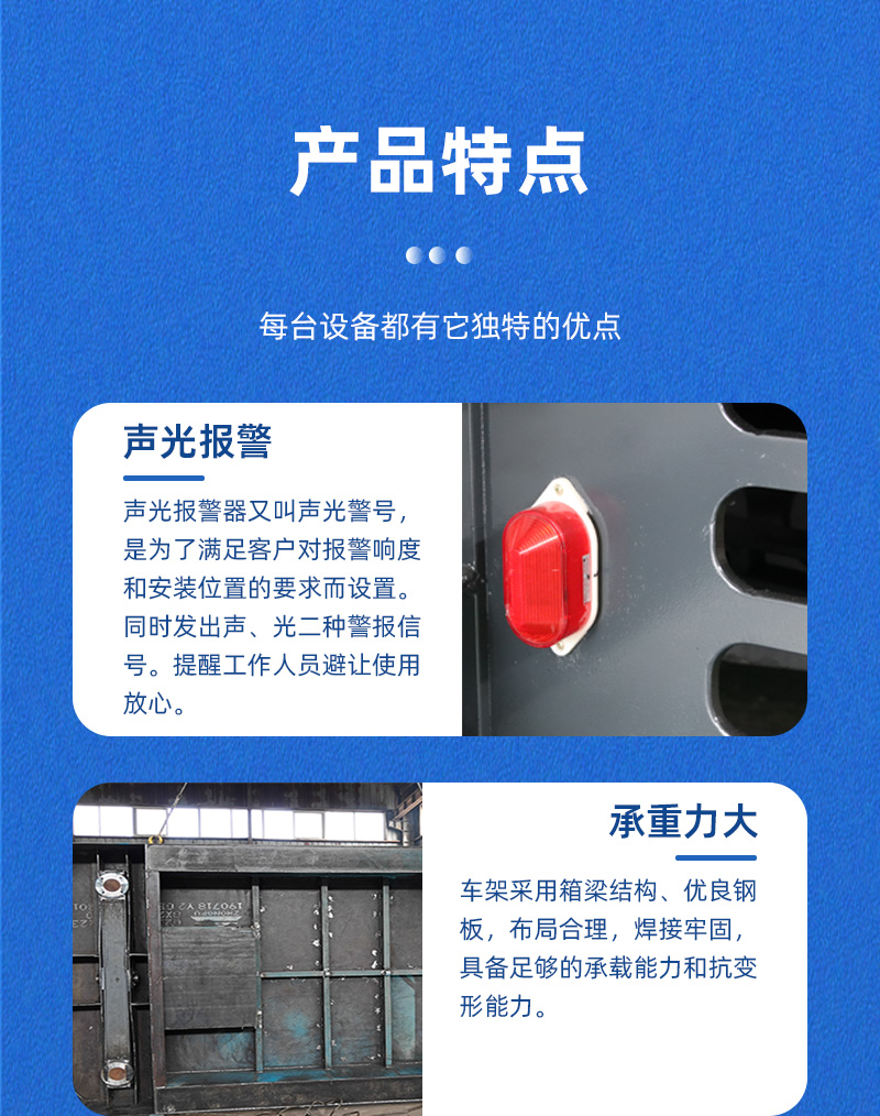 公司保障:電動平車、軌道平車的承重安全系數(shù)不低于60%