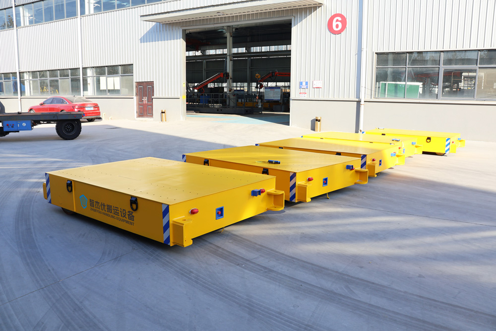 針對客戶車間內外半成品轉運的需求,本次交付的無軌車采用差異化的承載設計-10噸車型適用于重型設備工裝轉運,2噸車型則專注于中小型半成品及零部件的高效移動。車輛均采用箱梁結構車架,在保證強承載能力的同時,實現了結構的輕量化與持久耐用,滿足高強度、連續作業的工業場景需求。