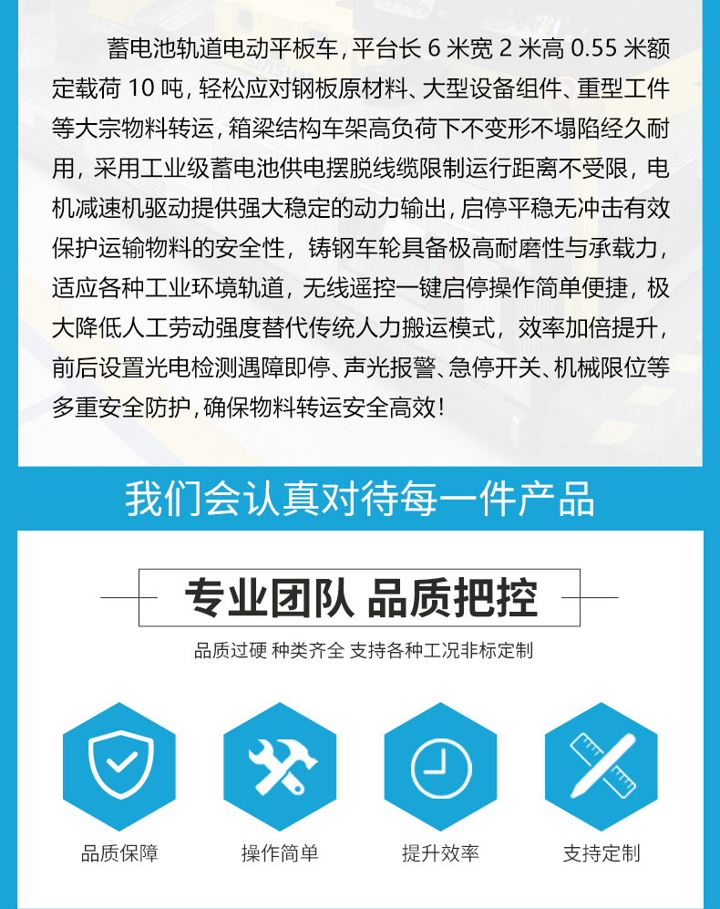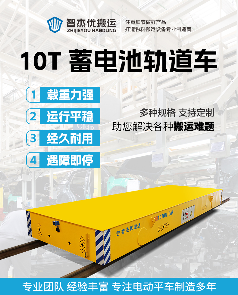 描   述: 車間內鋼板原材料、大型設備組件、重型工件等大宗物料轉運難?那你需要一臺蓄電池軌道電動平板車來助力!集高承載、耐用度、安全性、便捷操作等性能于一身,車間效率轉運提升70%!